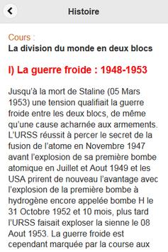 L’application « Histoire – Cours » est une application qui contient plusieurs cours d’Histoire Contemporaine. C’est une application mobile de soutien scolaire pour les élèves et étudiants du lycée et de l’université. Elle permet également aux candidats du Bac de réviser leurs cours.