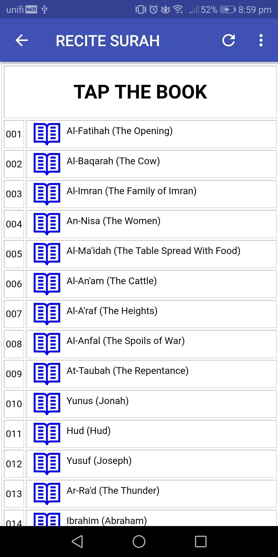 Tab the icon book to read surah. Same in translation page