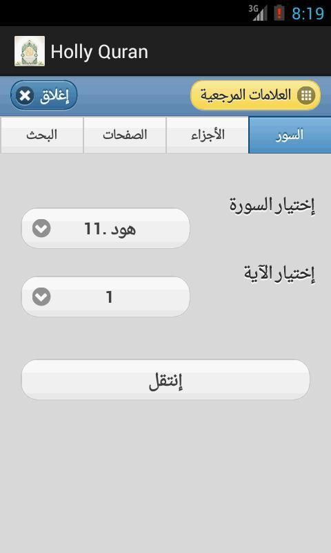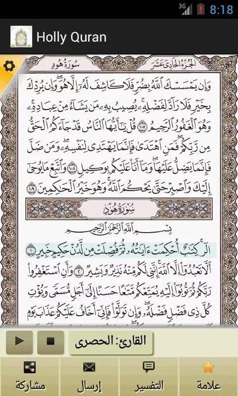 Священный Коран является веб-вид http://quran.ksu.edu.sa