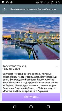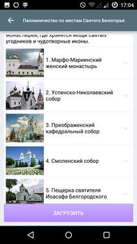 Приложение предназначено для помощи паломникам при ознакомлении с маршрутами по православным святым местам и прохождении по ним.