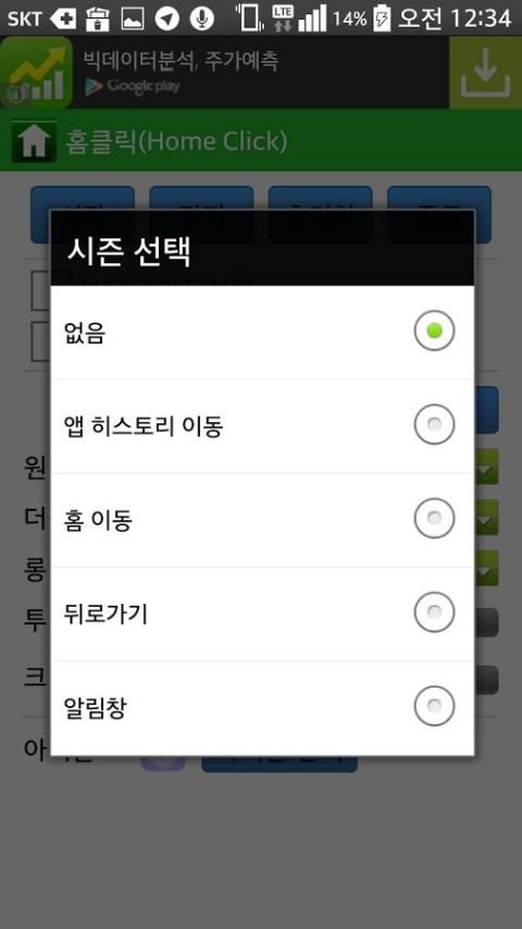 가상버튼바는 클릭에 따라 다음의 기능을 사용 할 수 있습니다.
