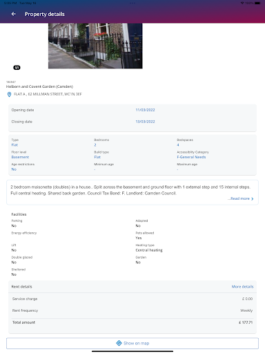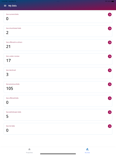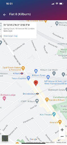 Приложение, основанное на выборе lettings по домашним соединениям.Настройте места поиска и просмотра свойств на карте.