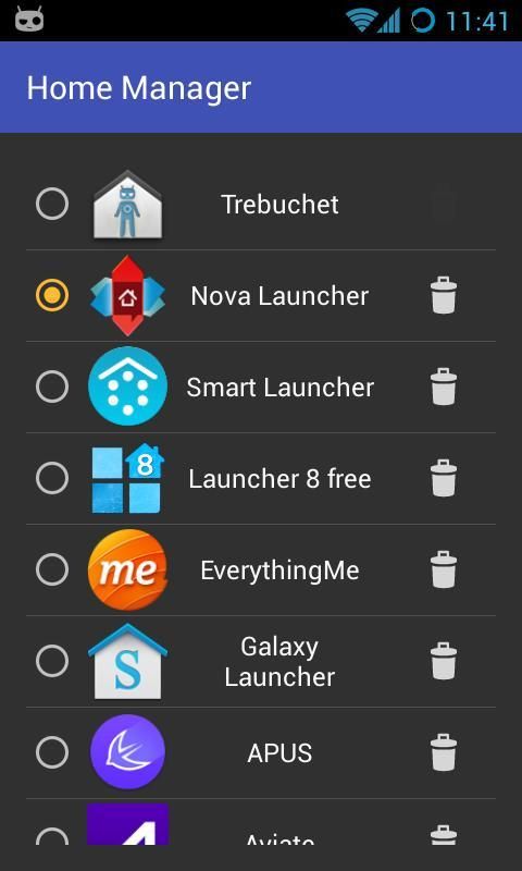 Домашний менеджер собирает все ракетные установки, установленные на вашем устройстве, и отображает их в простой, интуитивно понятный интерфейс. Вы можете установить пусковой умолчанию, и удалить пусковые прямо из приложения. Пусковые отличный способ, чтобы персонализировать свой Android OS, так и с помощью этого приложения будет намного легче.