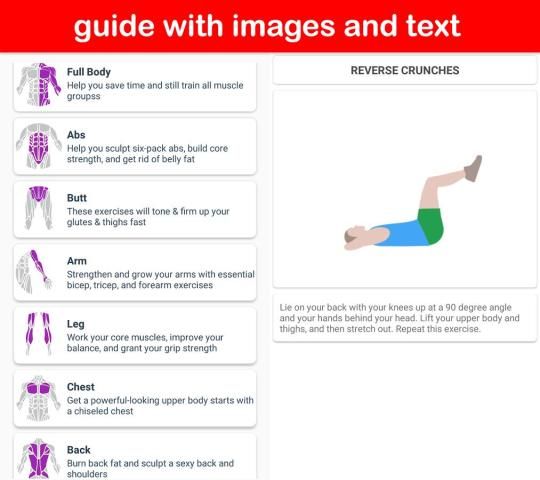 Потратив всего лишь короткий промежуток времени в день может укрепить и тон вашего тела. Простой интерфейс рутина, в комплекте с изображениями и таймером, позволяет легко следовать и понимать каждое упражнение. Просто создайте свою рутину и следовать вместе!