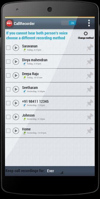 Call Recorder поможет вам отсылают свои телефонные разговоры. Записанные звонки постоянно хранятся, так что вы можете проверить их в любое время.