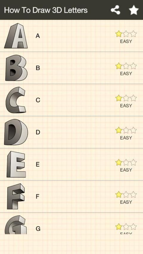 Это приложение содержит коллекцию простой шаг за шагом Как рисовать 3D письма!