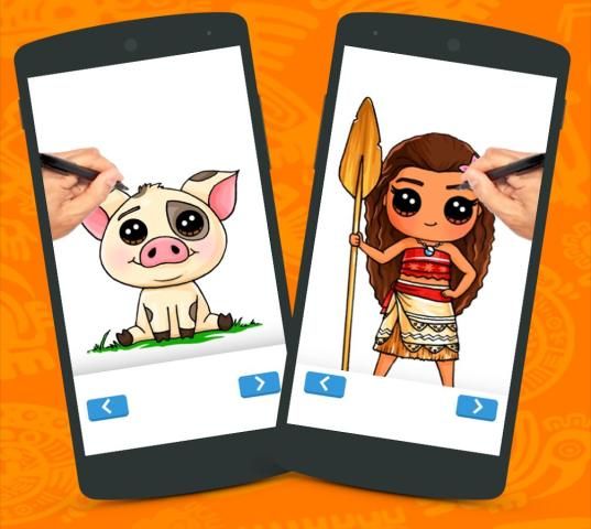 это приложение научит вас, как рисовать Maui и Moaña и Моана Pet и многие персонажи шаг за шагом.