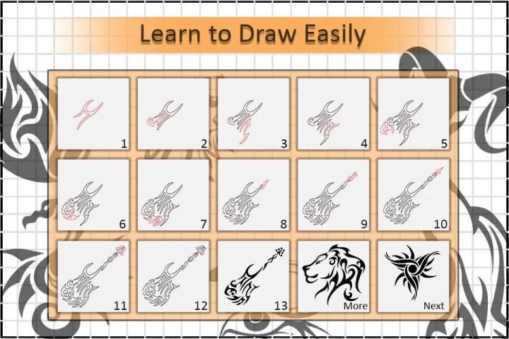 Как нарисовать татуировки приложение включает в себя следующие и предыдущие варианты, так что вы можете пойти вперед и назад через учебники, которые могут поможет вам узнать, как вы хотите!