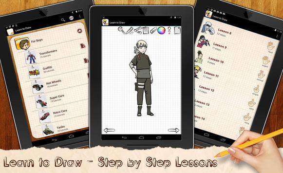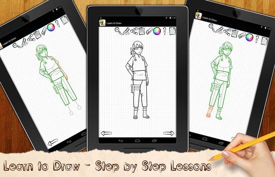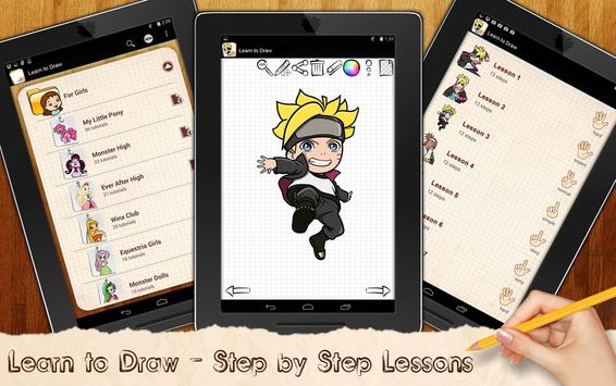 Try to draw and paint all of the most popular heroes of Learn how to draw boruto anime app in a mobile application for step-by-step drawing!
