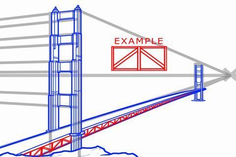 Шаг 19. Добавьте больше деталей, рисуя серию дополнительного луча пересекающих за нашим первым набором лучей. Также нарисуйте большие образные балки "X", которые поддерживают нижние ноги башен.