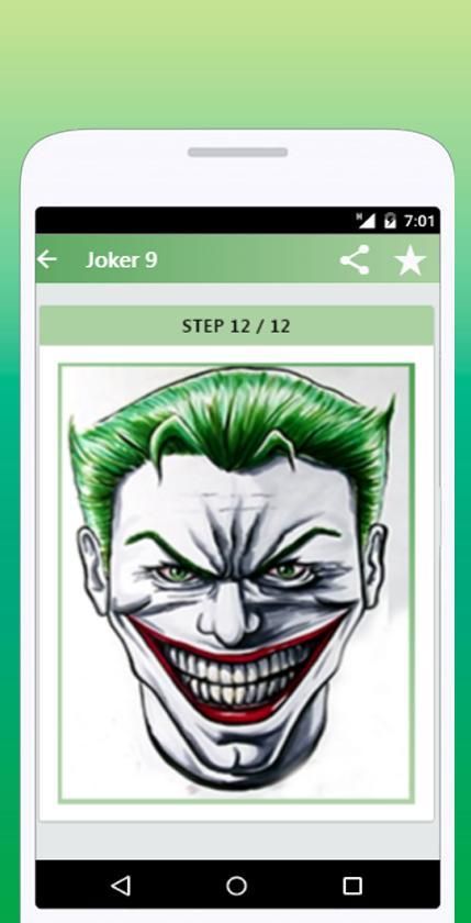 Joker Drawing это приложение, вы узнаете, как рисовать Джокер, jokerface, реалистичный джокер и мультфильм джокер быстро и шаг за шагом ...