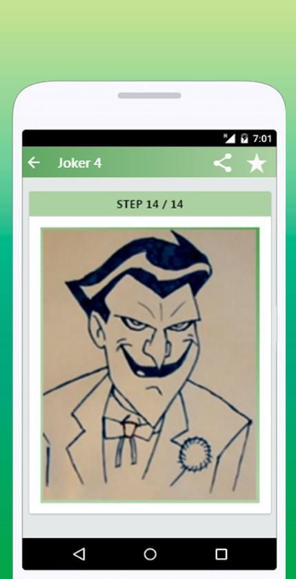 С нашим приложением Joker рисования вы сможете нарисовать джокера без каких-либо усилий и результат поразит вас, а также ваших друзей.