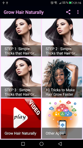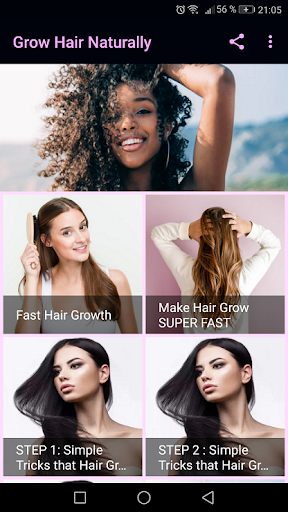 Это приложение Grow Hair Naturally поможет вам шаг за шагом получить длинные волосы. Существуют также различные прически (например: прическа, косы, дреды, кудри, афро, волнистые волосы, кручение, плетение, короткие волосы, ястреб, койли, ирокез, гана, плетение, типы кукурузных волос Wakanda (черная пантера). Натуральные прически.