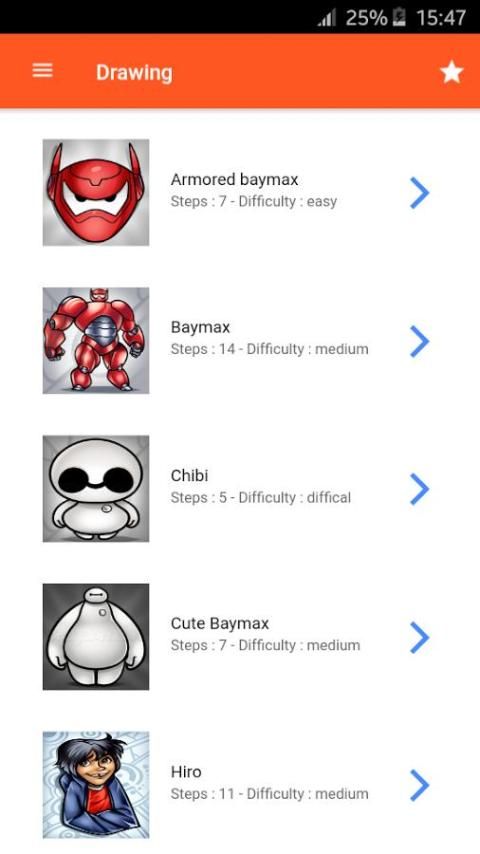 Как рисовать Big Hero 6 символов приложение, вы узнаете, как сделать большой герой 6 символов (Baymax, Чиби, Хиро ...) Быстро и шаг за шагом ...