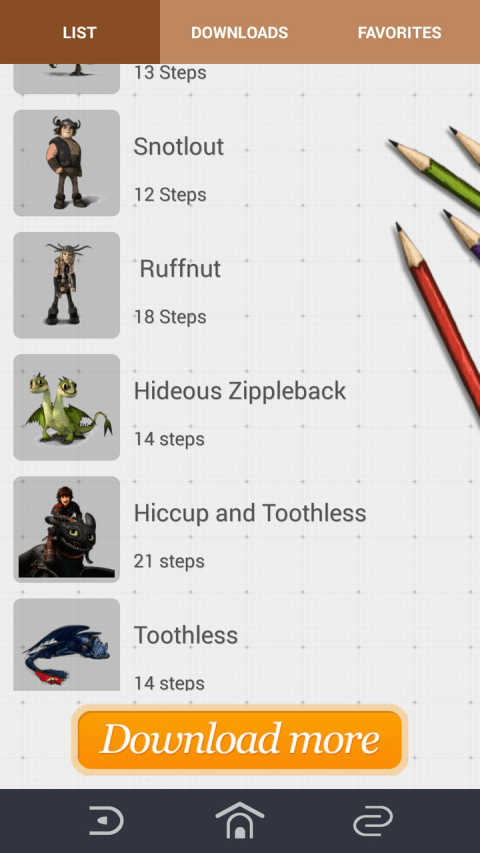Install the app drawin school "How to draw How to train your dragon " and enjoy the process of drawing your favorite characters. Using this app you'll see that drawing is easy and fun. In our app we use step by step lessons available to anyone. You will be able to draw any picture even you have no or little drawing skills. You say, you have never been able to draw in your live? Don't panic! A person who is going to draw for the first time will master our program without any efforts and experienced artists will improve their skills. Advantages: The app is fully free! Each lesson has 10-25 steps. Just choose your level: easy, normal, advanced. Enlarge the picture to draw small details. A huge number of pictures are available. The time is not limited. You can go over to another step when you are ready to. Use the app in any place, Internet connection is not required! The program Drawin School is for people of any age. Just choose a picture you like. What's the point in step by step drawing? The main point is that a difficult picture is divided into many simple parts which go one after another. With each step the picture becomes more difficult. The steps themselves are very simple, even a kid can cope with them. Having drawn all the parts, you'll get a finished picture. Be careful, your teacher may catch you drawing instead of studying.