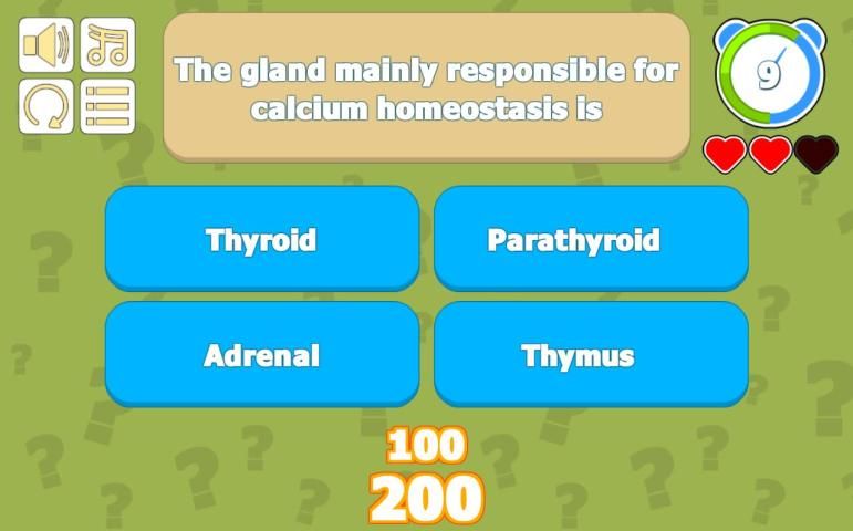 Это приложение представляет несколько вопросов выбора из биологии человека, который охватывает анатомию и физиологию.