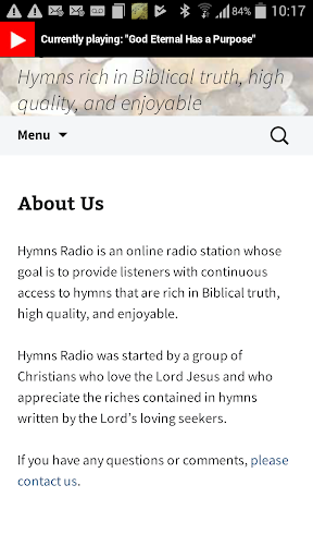 Hymns Radio is an online radio station whose goal is to provide listeners withy continuous access to hymns that are rich in Biblical truth, high quality and enjoyable.