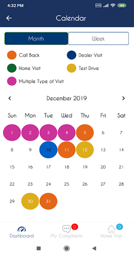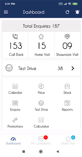 Дилерское мобильное приложение позволяет сотрудникам дилера отслеживать свои повседневные мероприятия и в ожидании задач, которые помогут им принять проактивный подход к назначенным задачам и, следовательно, улучшает их производительность и эффективность.Консультант по продажам и консультанту по обслуживанию могут проверить их соответствующий список задач, отслеживать и закрыть их удобство.Лидерство команды и менеджеры будут иметь общую видимость мероприятий.