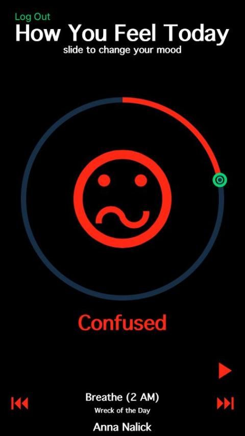 Теперь вы просто скользить круг и мы будем искать идеальную песню для вашего текущего чувства.