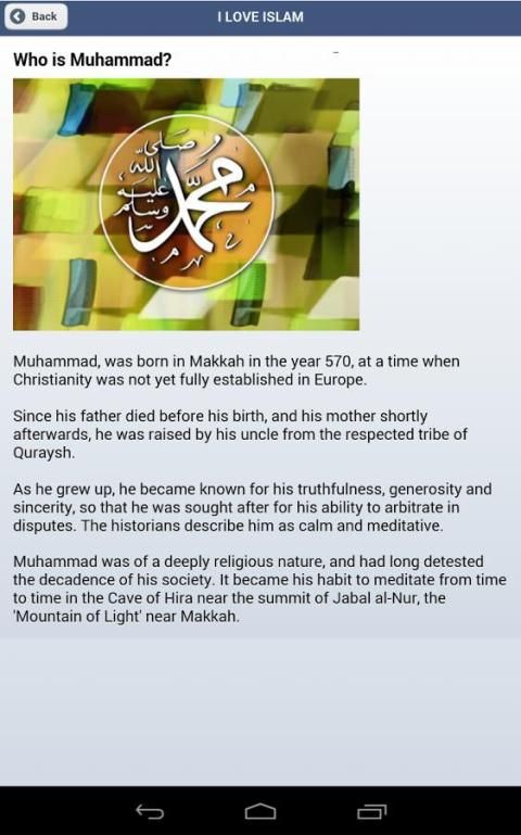 Я люблю ислам, цель этого приложения является предоставление основной информации об исламе.