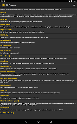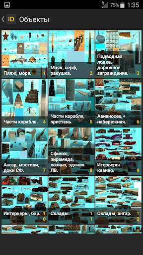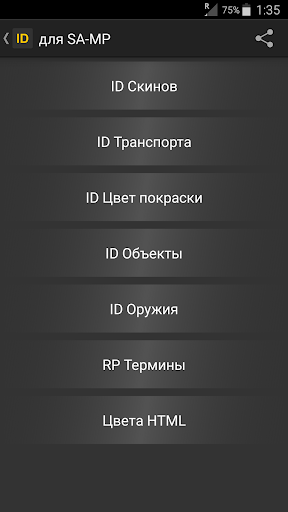 СОДЕРЖАНИЕ: ID Скинов, ID Транспорта, ID Объектов, ID интерьеров, Различные цвета, Полный список РП Терминов для Role Play серверов, Чит коды для одиночной игры и многое другое.