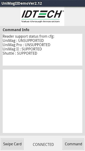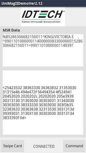 Это приложение предоставляется ID Tech для демонстрации функциональных возможностей семейства ID Tech UniMag от мобильных устройств читателей карт STRIPE Mobile, члены которых включают Unimag (оригинал), Unimag Pro, UniMag II и Shuttle.