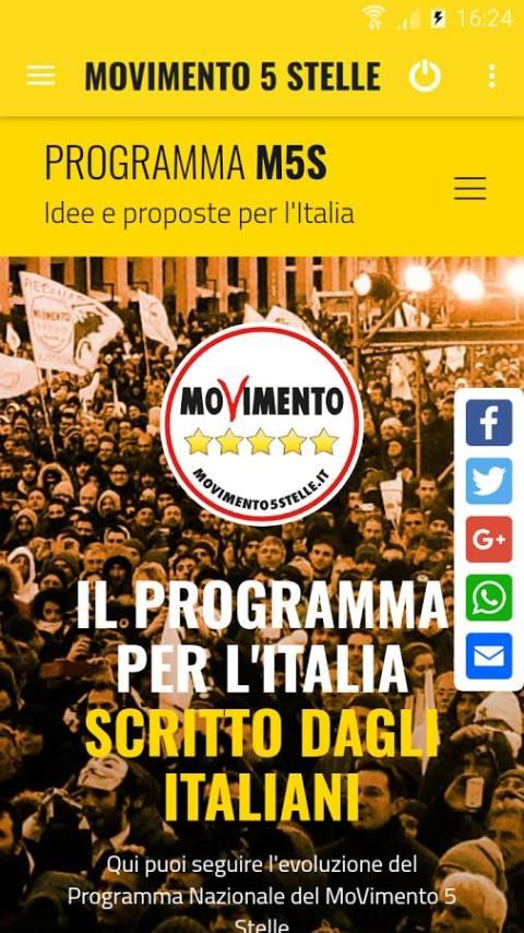 Узнайте, что они создают тысячи людей, как вы, которые имеют общие идеи и решения, чтобы создать лучшую страну. В Италии он разрабатывает первую и единственную политическую программу, на основе участия и онлайн прямой демократии через OS Rousseau. Вместе мы изучаем, обмен информацией и обсуждать все вопросы, которые влияют на нас и наше будущее, Tax Justice, от безопасности на рабочем месте.