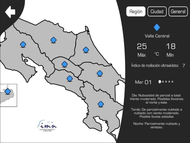 Приносит Национальный метеорологический институт Коста-Рики вы IMN мобильное приложение, чтобы иметь информацию о погоде и другие смежные вопросы, спонсируемые: