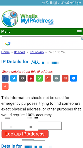 'IP LOCATION FINDER' should be used for emergency purpose, trying to find someones exact physical address, or other purpose that would require 100% accuracy.