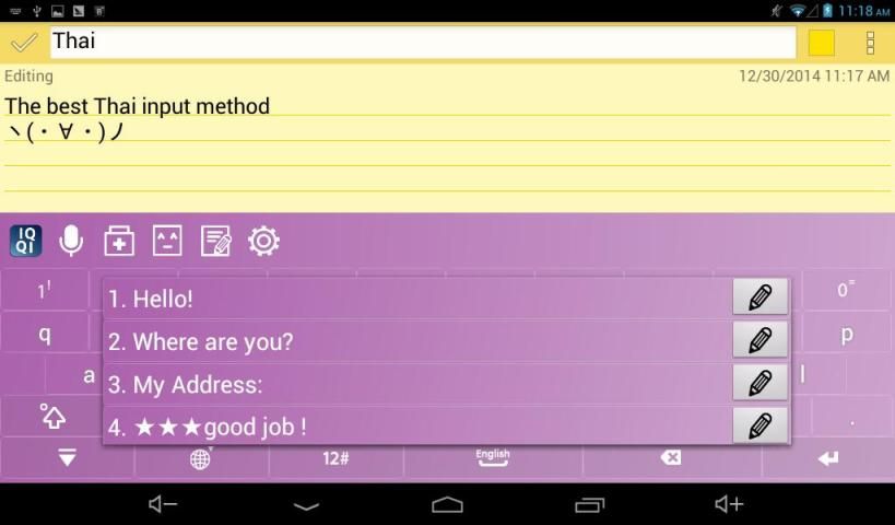 "IQQI - Тайский клавиатура" является усовершенствованной Тайский виртуальное приложение клавиатура, которая поддерживает Android 2.x 4.x ~.