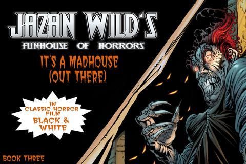 Jazan Wild's Funhouse of Horrors is open for business once again, in classic horror film black and white! This ongoing collection of stories begins another ghostly tale of the living-impaired through the eyes of the lead character, horror writer Jake Stone. Where there's a haunted house, there's someone's story.In the third book in the series, we find Jake Stone, the ultimate ghost seeker and everyone's favorite black hearse driver, heading to York, Pennsylvania, to investigate the seven gates of Hell. A place the locals know very well. Finally, all those urban myths will be laid bare. Now we'll find out just how they died. So, prepare yourselves and put your therapist on speed dial… "It's a Madhouse." Enter if you dare... Jazan Wild's Funhouse Of Horrors... It's A Madhouse Out There!Includes The Bonus Rock and Roll Track... IT'S A MADHOUSE (OUT THERE)"FUNHOUSE OF HORRORS" is a Registered Trademark.