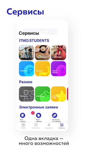Одна вкладка — много возможностей. Выбирай клубы по интересам, заходи в универ по электронному пропуску, подавай заявки, следи за финансами, заказывай еду, вставай в очереди, мчи на самокате — перечислять можно долго, лучше попробовать. А сколько ещё впереди!