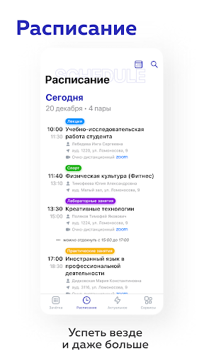 С его помощью ты сможешь следить за персональным расписанием, оценками, баллами, актуальными новостями, подавать электронные заявки и входить в корпуса.