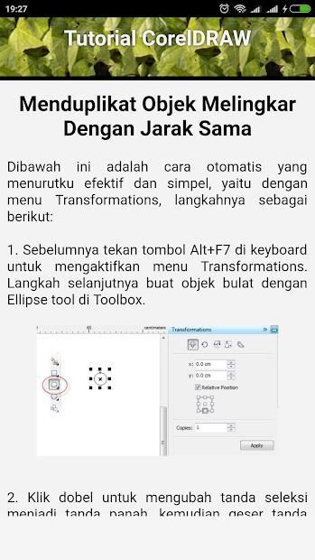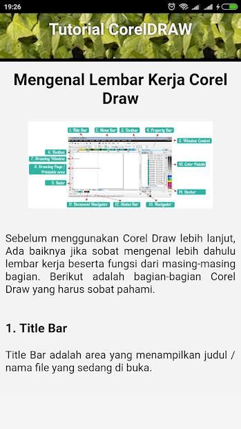 This Coreldraw Tutorial application is an application that contains CorelDRAW tutorial material in Indonesian and clear picture instructions. This application is very easy to use and is perfect for you as a worker or student who is often busy with the task of making sketches, lines, vectors, designs, or drawings. In this application, you will be taught how to easily design pins, business cards, certificates, logos, etc. using Coreldraw.