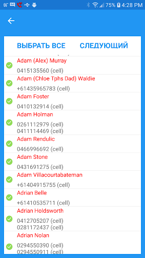 Передача 1-приложения в приложение (приложение должно быть установлено на обоих телефонах) просто нажмите, выберите контакты, которые хотите отправить, и нажмите «Отправить», и вам будет присвоен идентификационный номер, вы введете идентификатор на телефоне-получателе, и контакты будут переданы. мгновенно.