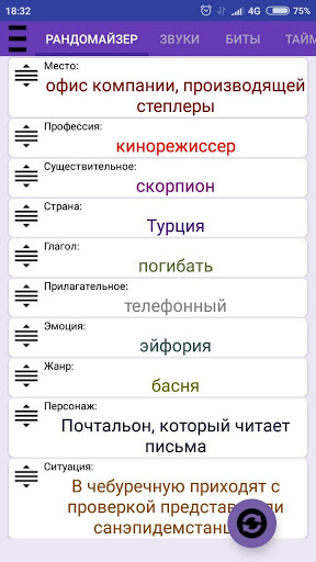 Место, персонаж, жанр, профессия и многие другие оригинальные "suggestions".