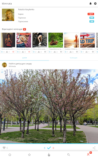 • На карточке челленджа видно очки кармы