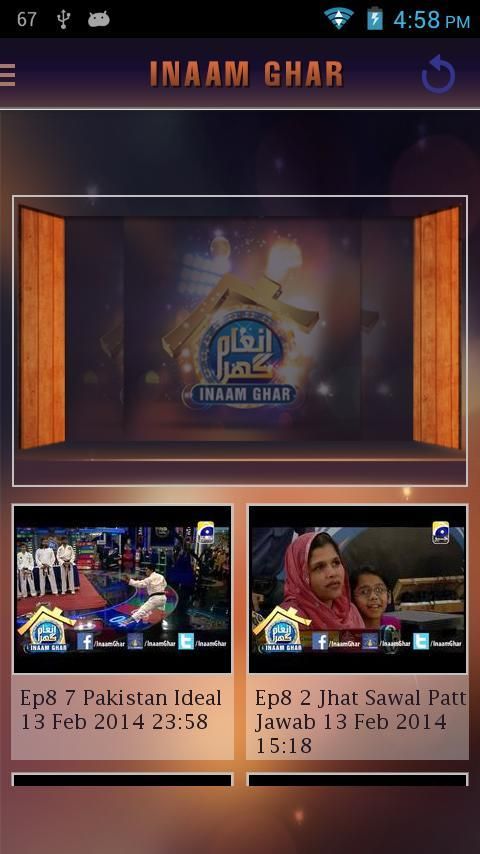 Официальный Android-приложение из Geo телевизора хит игрового шоу "Inaam Гар". Смотреть Inaam Гар жить и переживать радости, наблюдая архивные видео. Получайте новости шоу, предупреждений и уведомлений все на вашем телефоне