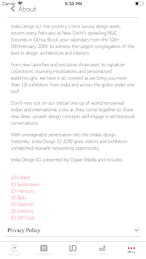 India Design ID, presented by Ogaan Media and includes - ID Exhibit, ID Symposium, ID Honours, ID Talks, ID Satellite, and ID Interiors