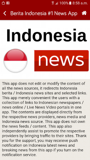 Indonesia News ( Berita Indonesia ) provides a fast and an easy way to read the latest news and live news from Indonesia. Save your time by reading multiple Indonesian news sources using one app. Simply select your favourite Indonesia News media or Live News. Let us know any news source you would like to add in the app. One app for all Indonesia news.