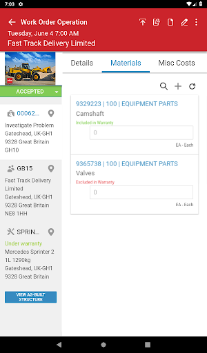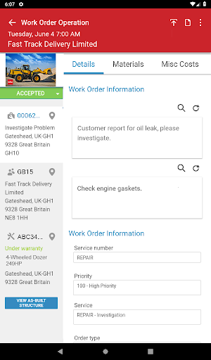 подробная отчетность в Infor Mobility для полевых услуг будет включать запчасти, время труда, время в пути , Коды ошибок, подробные заметки для ремонта и возможности, чтобы позволить заказчику в электронном виде подписать работу.