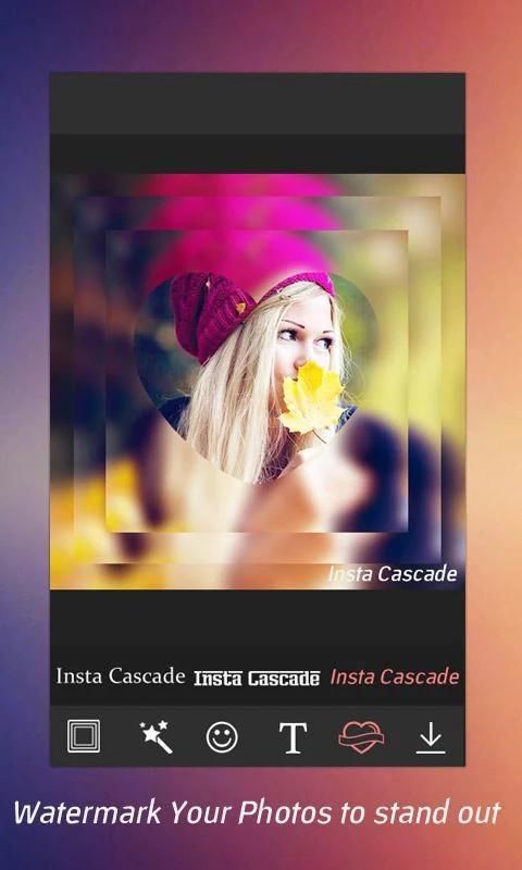 С Insta каскадной площади фоторедактор разместить свои фотографии в социальной сети быстро или изменять размер фотографий, пригодный для социальной сети, как Instagram. С Insta каскаде - квадратный редактор фото вы можете добавить заголовок и смайлик вместе на фотографии. Вы можете добавить много забавных наклеек тоже, а не только смайликов.