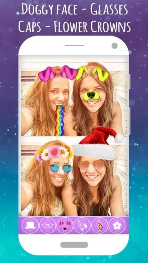 ♥ Добавить наклейки Doggy Face, милый кролик, радуга, цветок Корона, Emoji и многое другое ..