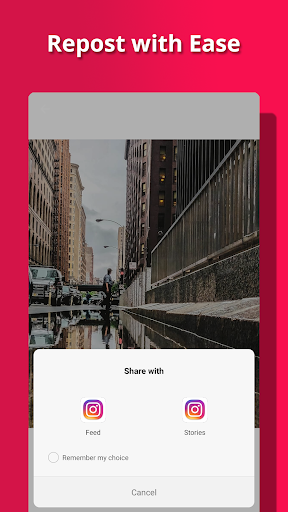 * Repost - это приложение позволяет быстро и быстро обновлять загрузку изображений и видео в приложении insta / IG.