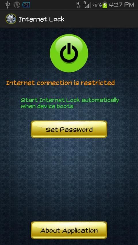 This simple and useful application will help you to prevent unauthorized use of internet (wifi or Mobile data) .we all come across the situation when we don't want that , other person use internet / mobile data from our device.So, this application provides simple solution to password protect you internet connection.After you lock the internet, no one will be able to use the internet from your mobile/tablet unless you provide them the password.Your Internet connection is protected now !!Download and enjoy..