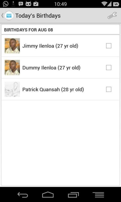 * День рождения Список на текущий день (вычисляет возраст, если год присутствует), используя контактную информацию.