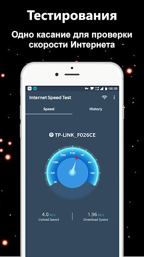 Используйте Тест скорости Интернета легко запустить Интернет тест скорости и измерять скорость Интернета, принимая сотовой или WiFi тест скорости. Тест скорости WiFi простой, но мощный бесплатный Интернет метр скорости. Это поможет вам проверить скорость Интернета широкого спектра мобильных сетей (3G, 4G, Wi-Fi, GPRS, WAP, LTE). с одним касанием и получите всю информацию о вашей скорости Интернета.