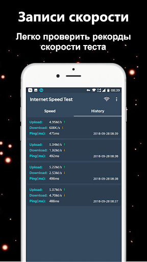 ■ Автоматическое сохранение прошлых результатов проверки скорости Интернета.