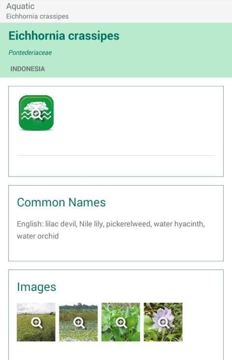 Это приложение является дополнением к печатному Руководству по натурализованным и инвазивным растениям Юго-Восточной Азии. Руководство было преобразовано в приложение, чтобы сделать его доступным для пользователей на своем мобильном устройстве. Она будет доступна в автономном режиме, то есть пользователь не будет иметь подключение к Интернету для просмотра гида, только чтобы обновить его. Содержимое можно просматривать по типу растений (например, водных, дерево, кустарник) или общее название. Сообщение шаблона SMS можно найти в конце каждого информационного листка, который может быть использован для уведомления других о местонахождении вида.