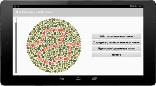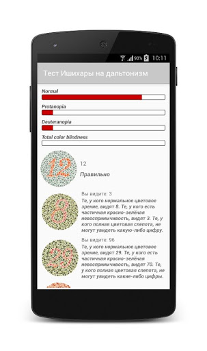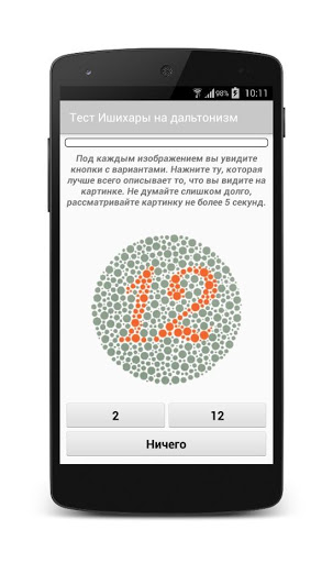 * Пластины со скрытыми цифрами: только люди с дефектом цветового зрения могут распознать фигуру.